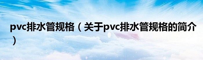 本文關于pvc排水管規格的簡介就講解完畢,希望對大家有所幫助。