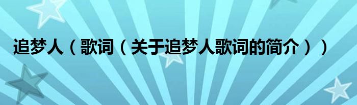 本文關于追夢人 歌詞的簡介就講解完畢,希望對大家有所幫助。