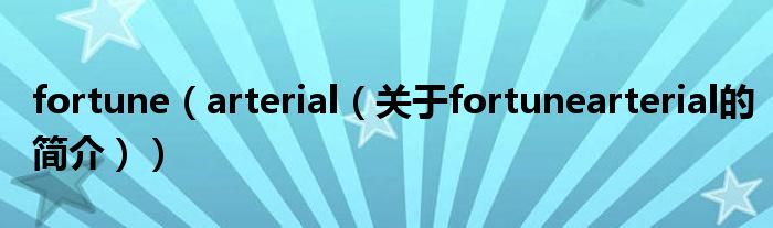 本文關于fortune arterial的簡介就講解完畢,希望對大家有所幫助。