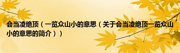 本文關于會當凌絕頂 一覽眾山小的意思的簡介就講解完畢,希望對大家有所幫助。