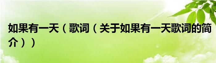 本文關(guān)于如果有一天 歌詞的簡(jiǎn)介就講解完畢,希望對(duì)大家有所幫助。