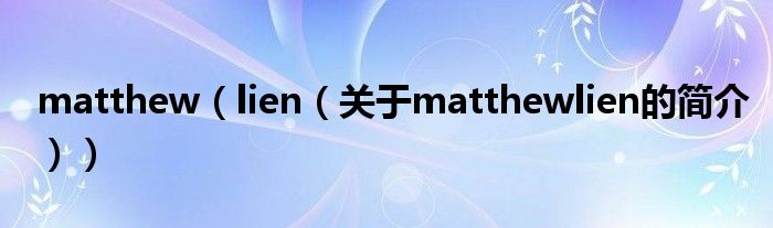 大家好,matthew lien,關于matthew lien的簡介很多人還不知道,現在讓我們一起來看看吧!
