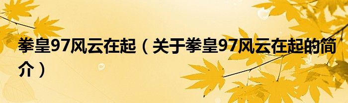 本文關(guān)于拳皇97風(fēng)云在起的簡介就講解完畢,希望對大家有所幫助。