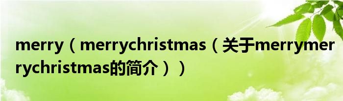 本文關(guān)于merry merry christmas的簡(jiǎn)介就講解完畢,希望對(duì)大家有所幫助。