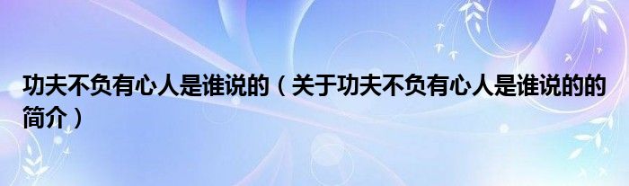 本文關于功夫不負有心人是誰說的的簡介就講解完畢,希望對大家有所幫助。