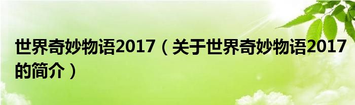 大家好,世界奇妙物語2017,關于世界奇妙物語2017的簡介很多人還不知道,現在讓我們一起來看看吧!
