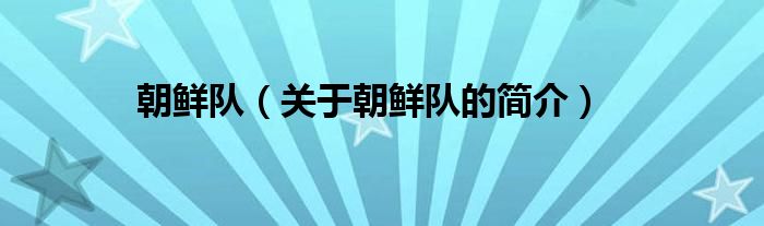大家好,朝鮮隊,關于朝鮮隊的簡介很多人還不知道,現在讓我們一起來看看吧!