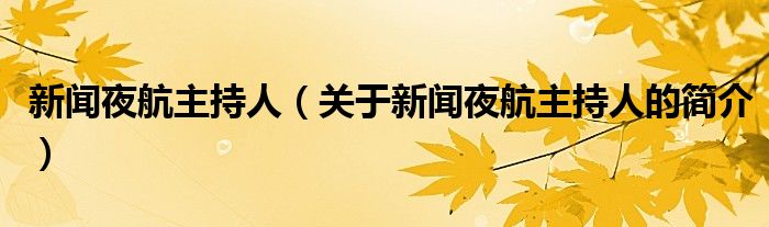 本文關于新聞夜航主持人的簡介就講解完畢,希望對大家有所幫助。