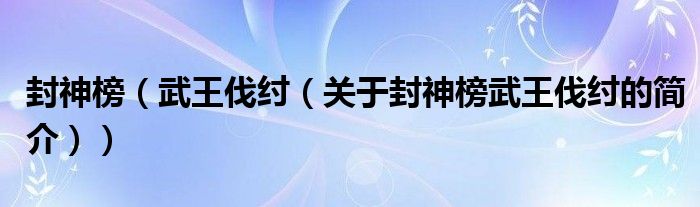 本文關于封神榜 武王伐紂的簡介就講解完畢,希望對大家有所幫助。