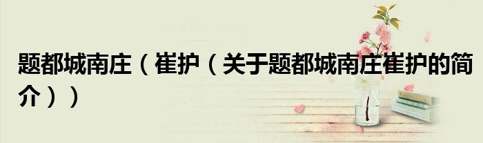 大家好,題都城南莊 崔護,關于題都城南莊 崔護的簡介很多人還不知道,現在讓我們一起來看看吧!