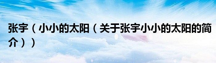 本文關于張宇 小小的太陽的簡介就講解完畢,希望對大家有所幫助。