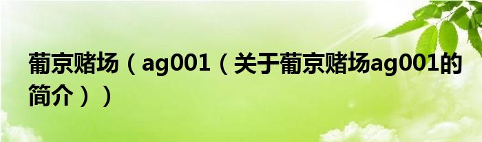 本文關于葡京賭場 ag001的簡介就講解完畢,希望對大家有所幫助。