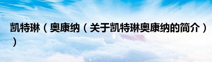 大家好,凱特琳 奧康納,關于凱特琳 奧康納的簡介很多人還不知道,現在讓我們一起來看看吧!