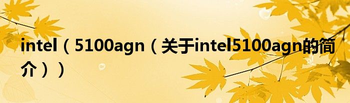 本文關于intel 5100 agn的簡介就講解完畢,希望對大家有所幫助。