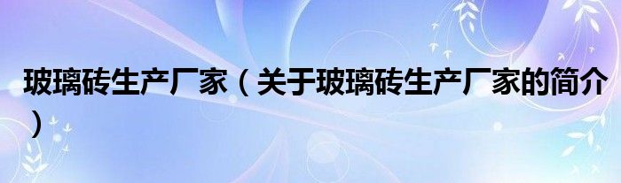 本文關(guān)于玻璃磚生產(chǎn)廠家的簡(jiǎn)介就講解完畢,希望對(duì)大家有所幫助。