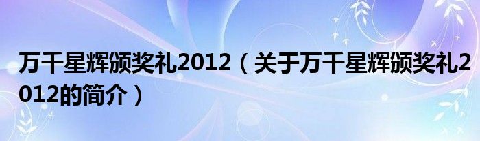 本文關于萬千星輝頒獎禮2012的簡介就講解完畢,希望對大家有所幫助。