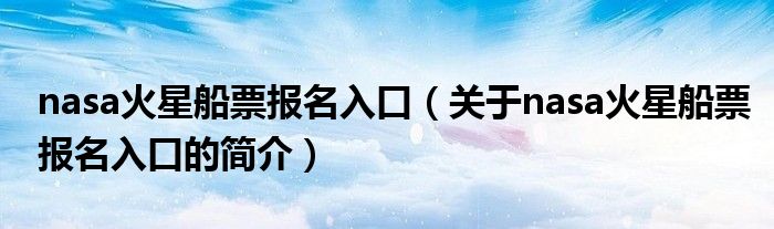 本文關(guān)于nasa火星船票報名入口的簡介就講解完畢,希望對大家有所幫助。