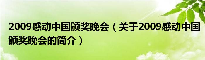 本文關于2009感動中國頒獎晚會的簡介就講解完畢,希望對大家有所幫助。