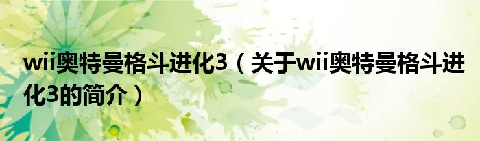 本文關于wii奧特曼格斗進化3的簡介就講解完畢,希望對大家有所幫助。