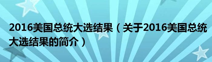 本文關于2016美國總統大選結果的簡介就講解完畢,希望對大家有所幫助。