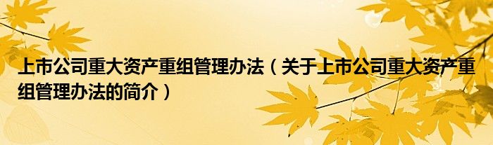 本文關(guān)于上市公司重大資產(chǎn)重組管理辦法的簡介就講解完畢,希望對大家有所幫助。