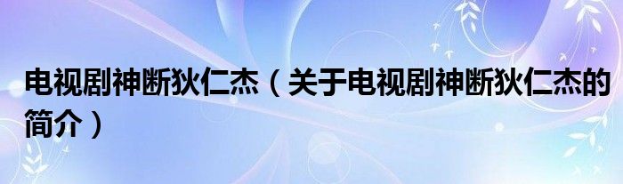 本文關于電視劇神斷狄仁杰的簡介就講解完畢,希望對大家有所幫助。