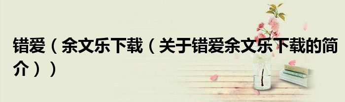 本文關于錯愛 余文樂 下載的簡介就講解完畢,希望對大家有所幫助。