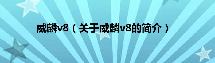 本文關于威麟v8的簡介就講解完畢,希望對大家有所幫助。