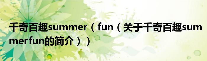 本文關于千奇百趣summer fun的簡介就講解完畢,希望對大家有所幫助。