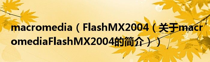 大家好,macromedia Flash MX 2004,關(guān)于macromedia Flash MX 2004的簡(jiǎn)介很多人還不知道,現(xiàn)在讓我們一起來(lái)看看吧!