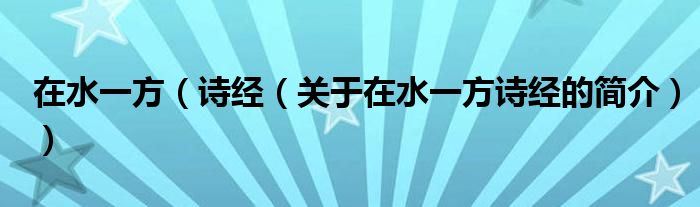 本文關(guān)于在水一方 詩經(jīng)的簡介就講解完畢,希望對大家有所幫助。
