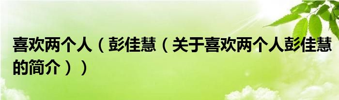 本文關于喜歡兩個人 彭佳慧的簡介就講解完畢,希望對大家有所幫助。