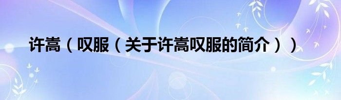大家好,許嵩 嘆服,關于許嵩 嘆服的簡介很多人還不知道,現在讓我們一起來看看吧!