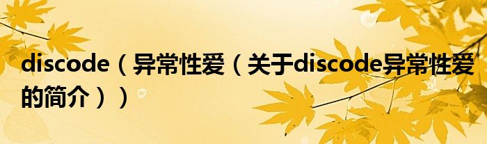 本文關于discode 異常性愛的簡介就講解完畢,希望對大家有所幫助。