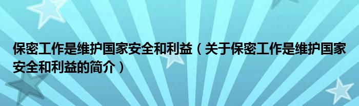本文關于保密工作是維護國家安全和利益的簡介就講解完畢,希望對大家有所幫助。