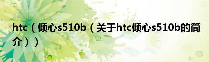 本文關于htc 傾心 s510b的簡介就講解完畢,希望對大家有所幫助。