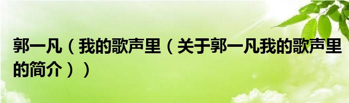 本文關于郭一凡 我的歌聲里的簡介就講解完畢,希望對大家有所幫助。