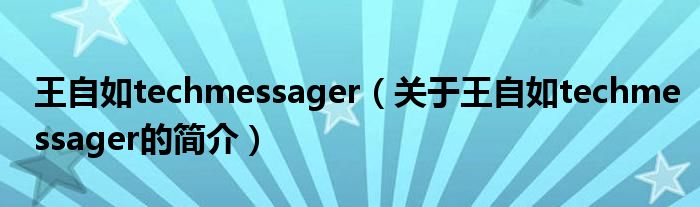 本文關(guān)于王自如techmessager的簡介就講解完畢,希望對大家有所幫助。