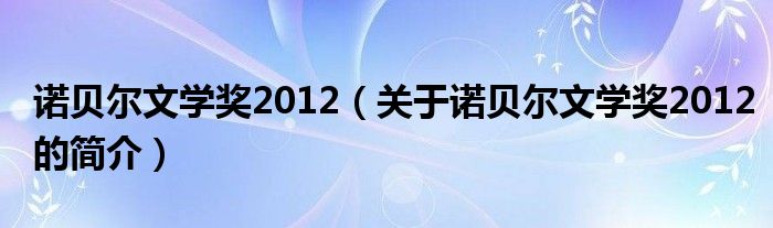 大家好,諾貝爾文學獎2012,關于諾貝爾文學獎2012的簡介很多人還不知道,現在讓我們一起來看看吧!