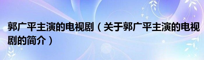 本文關于郭廣平主演的電視劇的簡介就講解完畢,希望對大家有所幫助。