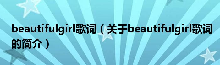大家好,beautifulgirl歌詞,關于beautifulgirl歌詞的簡介很多人還不知道,現在讓我們一起來看看吧!