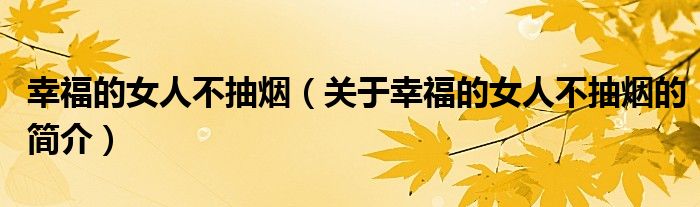 本文關于幸福的女人不抽煙的簡介就講解完畢,希望對大家有所幫助。