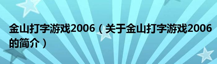 本文關(guān)于金山打字游戲2006的簡介就講解完畢,希望對大家有所幫助。