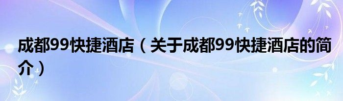 本文關于成都99快捷酒店的簡介就講解完畢,希望對大家有所幫助。