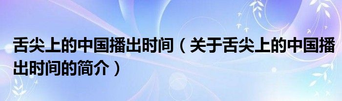 本文關于舌尖上的中國播出時間的簡介就講解完畢,希望對大家有所幫助。