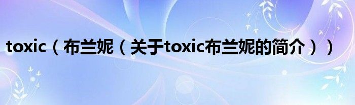 大家好,toxic 布蘭妮,關于toxic 布蘭妮的簡介很多人還不知道,現在讓我們一起來看看吧!
