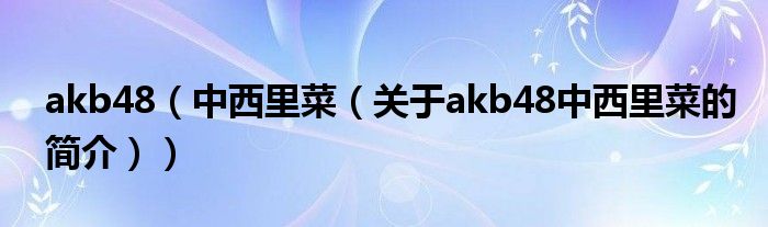 本文關于akb48 中西里菜的簡介就講解完畢,希望對大家有所幫助。