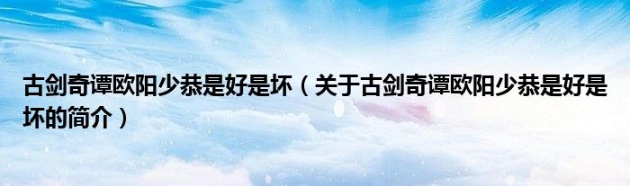 本文關于古劍奇譚歐陽少恭是好是壞的簡介就講解完畢,希望對大家有所幫助。