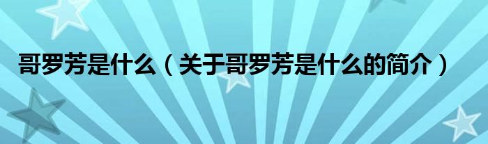 本文關于哥羅芳是什么的簡介就講解完畢,希望對大家有所幫助。