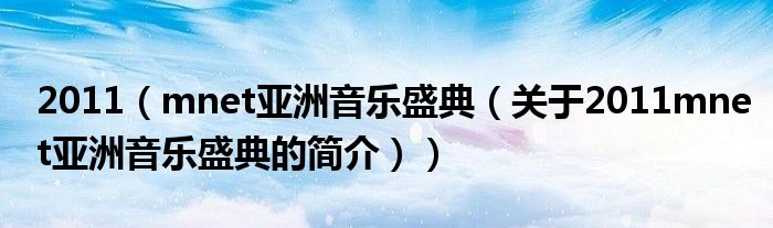 1、2011Mnet亞洲音樂(lè)大獎(jiǎng)(2011 Mnet Asian Music Awards,簡(jiǎn)稱(chēng)2011MAMA)是由CJ E\\u0026M、Media Corp聯(lián)合主辦的音樂(lè)獎(jiǎng)項(xiàng)。
